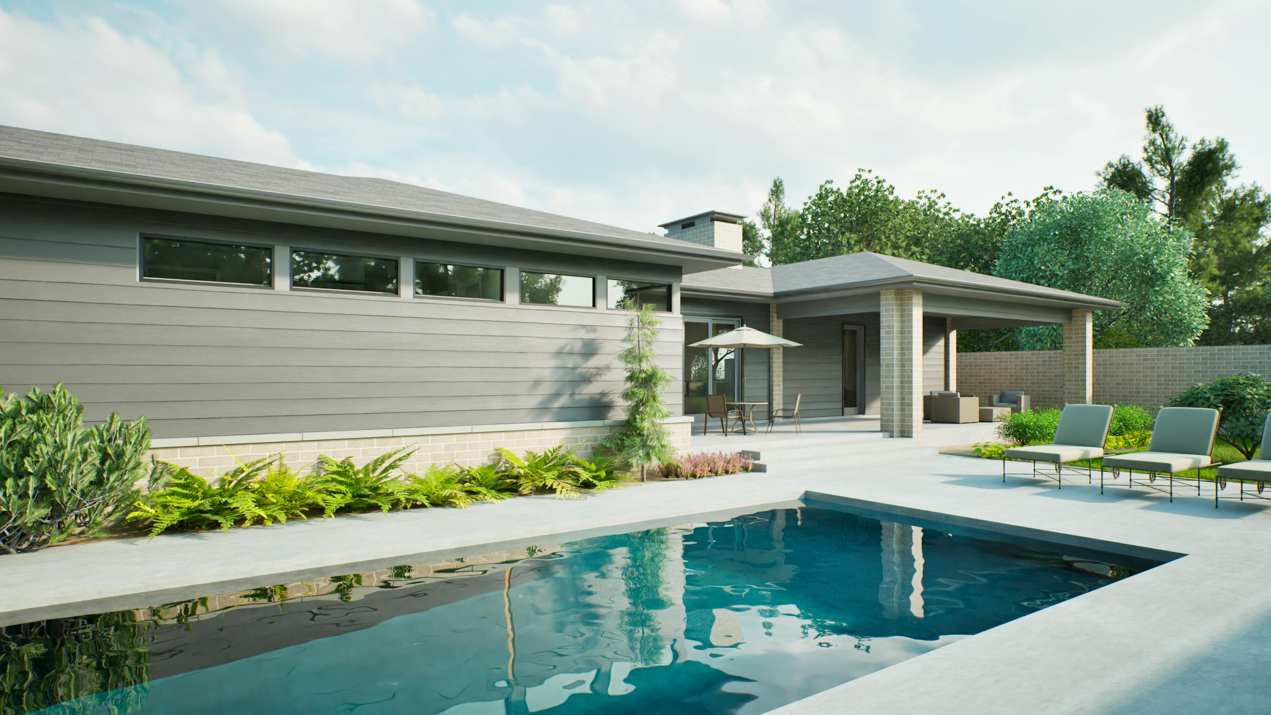 Three placement options for the fireplace, including a double sided fireplace between the Great Room and the Courtyard.